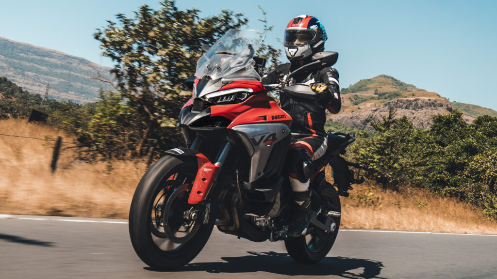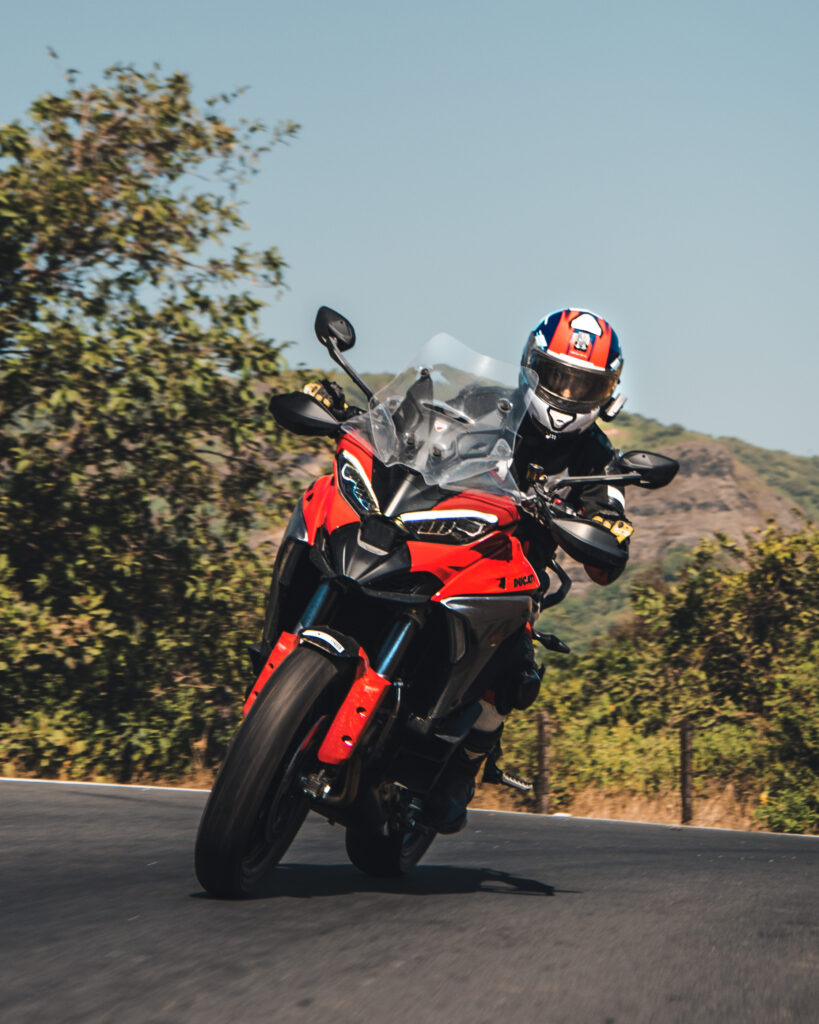 This is where the Multistrada V4 S genuinely caught me off guard. Big ADVs usually feel a bit vague when pushed hard in the corners. The Ducati doesn’t. It feels planted, stable, and eager to lean.