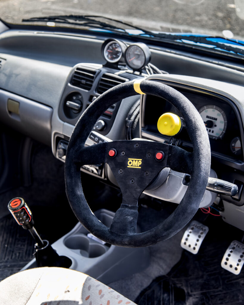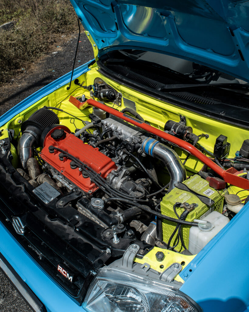 Step inside and the nostalgia continues, the original seats remain, the factory AC control panel is still in place, although the system itself is long gone, there is a MOMO Racing steering wheel that suits the era perfectly, a Sparco gear knob, a boost pressure gauge, a tachometer, and custom in house Race Concepts pedals. It feels old school, mechanical, and purposeful, easily one of the most complete G13B builds in the country.