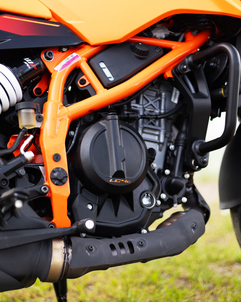 Apart from comfort over the saddle, the bike promises to be comfortable on the move too, with a new 43mm WP apex open-cartridge USD up front and a rebound and preload adjustable shock at the rear, the Duke can be set up from full-on canyon carver to plush mile muncher in a couple of seconds! This is good and all, but this isn’t the biggest differentiator between the old and new Duke, the new Duke comes with a brand-new engine!